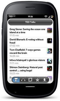 TED is a non profit organization devoted to spreading worthy ideas through a series of conferences with inspiring speakers held by TED and other associated organizations. TED for webOS is an app made by a non-affiliated third party that believes in the TED ideal of Ideas Worth Spreading about Technology, Entertainment and Design. Toon Doctor has built two versions of TED. One is for the TouchPad, the other for Palm phones.