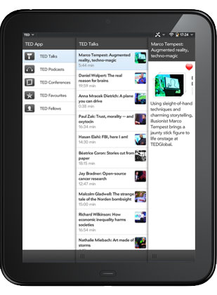 TED HD is a beautiful app that makes use of the unique pane interface used throughout webOS for the TouchPad. TED HD for includes TED Talks, through videos, TED Podcasts of audio adaptations of TED Talks. Users can add specific TED Talks or Podcasts to their TED Favourites. TED for webOS also includes a continually updated calendar of TED Conferences throughout the world, should you ever fancy attending TED live. TED for webOS also contains profiles of TED Fellows that have presented at TED. Finally, TED for webOS keeps you uptodate on new available TED Talks or Podcasts from TED through notifications.
