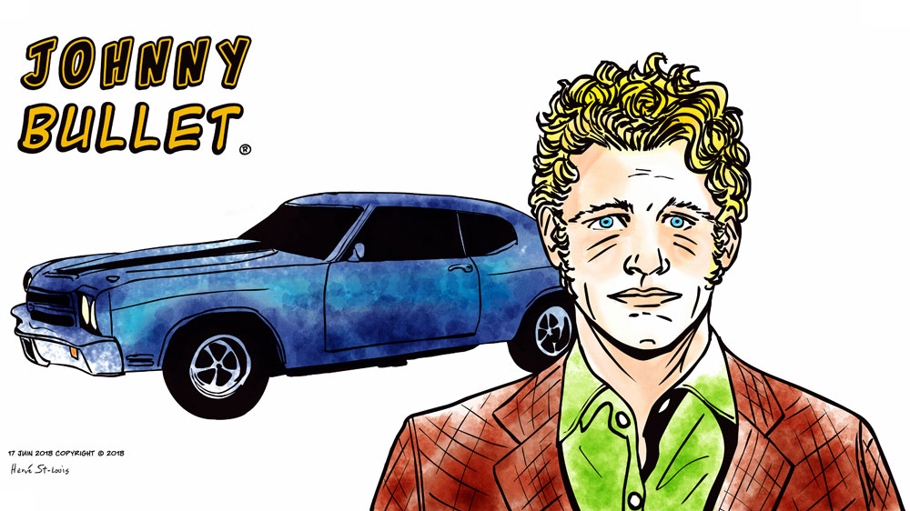 Johnny Bullet est un dur à cuire. Il est courageux. Il est intelligent et pilote de bagnoles musclées. Parfois (OK, la plupart du temps), il résout des intrigues. Johnny Bullet est une bande dessinée d'aventure journalière avec une sensation rétro des années 1970. L'histoire et le dessin rendent hommage à cette époque. Aventurier, Johnny Bullet est cascadeur et pilote de voiture de course. Il n'a pas de motifs secrets ou de côté sombre. Ce n'est qu’un bon gars qui fait le mieux qu'il peut. Toujours actif, au coup de poing facile, il défonce tout au volant de chars rapides. On peut évidemment lire Johnny Bullet en français.