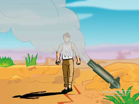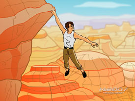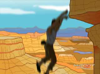 Although inspired in part by the eight minutes sequence performed by actor Tom Cruise in Mission Impossible II, you will have to create from scratch all of the scenes so that the entire sequence lasts no more than 35 seconds. Each animation level will have shadows and the extensive shots of the Grand Canyons, inspired by old Road Runner cartoons.